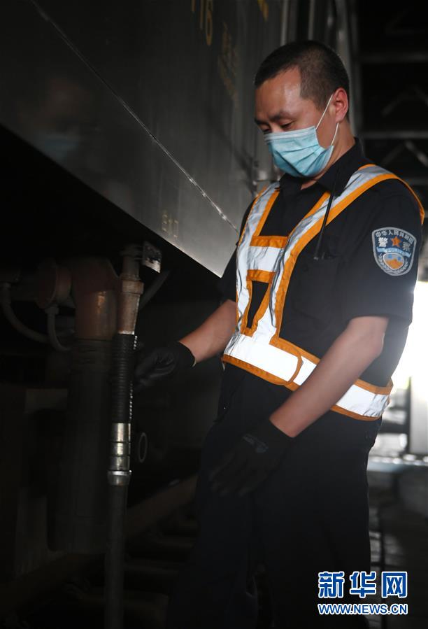 8月12日,長春火車站客運(yùn)車間上水工韓冰在給列車上水。新華社記者 林宏 攝