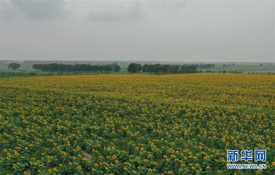 8月12日在尚義縣三工地鎮(zhèn)有德元村拍攝的旱作油葵(無(wú)人機(jī)照片)。新華社記者 楊世堯 攝