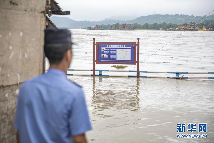 8月13日,在重慶市潼南區(qū)米心鎮(zhèn),涪江水位明顯上漲,一名工作人員在岸邊執(zhí)勤。受上游強降雨影響,嘉陵江近日出現(xiàn)明顯漲水過程,“嘉陵江2020年第1號洪水”已在嘉陵江支流涪江形成。重慶市正式啟動洪水防御Ⅱ級應(yīng)急響應(yīng)。據(jù)初步統(tǒng)計,截至13日16時30分,位于涪江畔的重慶市潼南區(qū),沿涪江7個鎮(zhèn)街不同程度受災(zāi),受災(zāi)人數(shù)8209人,轉(zhuǎn)移人口6658人,農(nóng)作物受災(zāi)面積5579畝。新華社記者黃偉攝