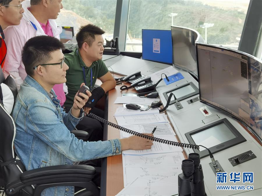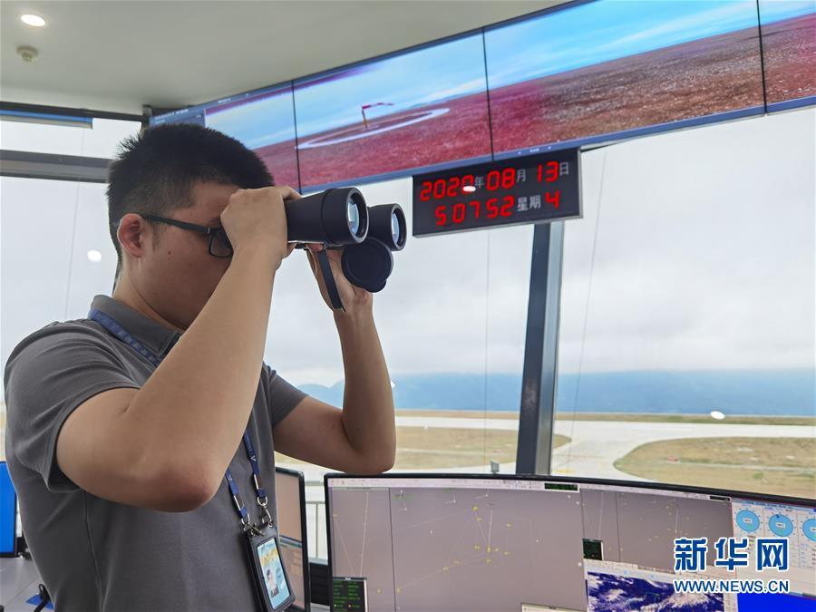 8月13日,參加校飛的地面工作人員在仙女山機場的塔臺工作區(qū)內(nèi)工作。當日,位于重慶武隆區(qū)的仙女山機場飛行校驗工作正式開始。據(jù)介紹,重慶仙女山機場校飛時間大約需3至5天。重慶仙女山機場于2018年4月全面開工,機場跑道長2800米、寬45米,航站樓總面積6000平方米,投用后可滿足每年60萬人次的旅客吞吐量。新華社記者劉潺攝