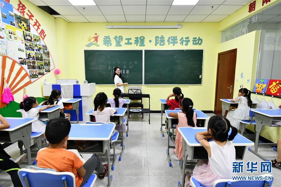 8月13日,在貴州省思南縣雙塘街道麗景社區(qū)易地扶貧搬遷安置點,志愿者在給孩子們上音樂課。今年暑假期間,在貴州省銅仁市思南縣雙塘街道麗景社區(qū)易地扶貧搬遷安置點,來自北京有研集團和思南當?shù)氐闹驹刚邆兝檬钇跁r間,給安置點的孩子們進行音樂、體育、手工、安全教育等課程輔導,幫助搬遷戶照看孩子,讓孩子們在學習中度過一個快樂而有意義的暑假。新華社記者楊文斌攝