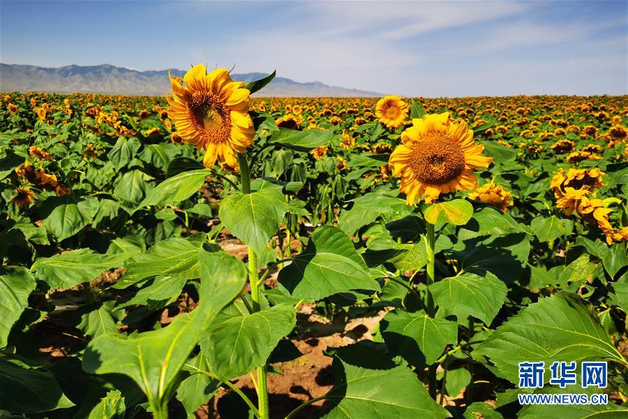 甘肅景泰:十萬畝向日葵“笑”迎豐收
