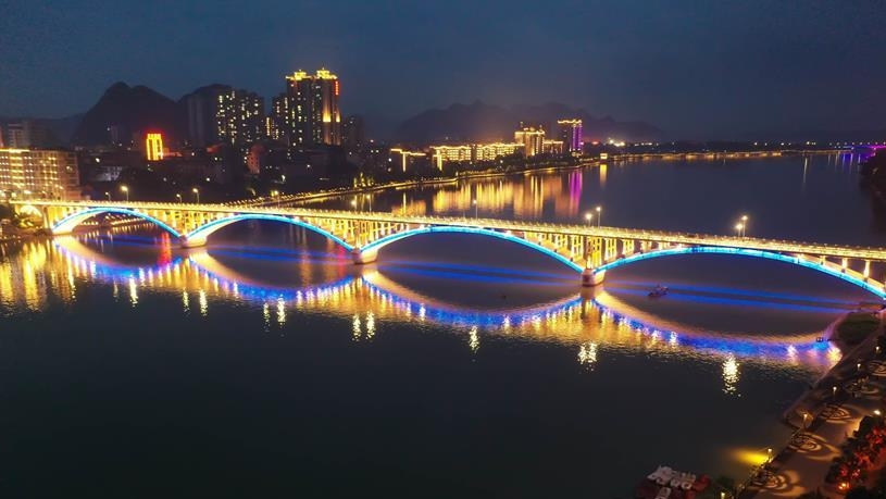 夏夜的廣西融安縣城燈火璀璨,景色迷人。