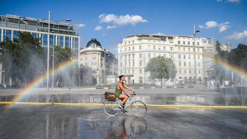 8月4日,人們?cè)谝獯罄锥剂_馬一家餐廳用餐。受新冠疫情影響,今年夏天羅馬的歷史中心區(qū)游客比往年明顯減少。