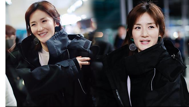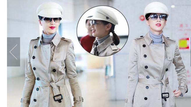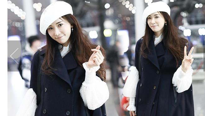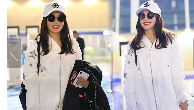 11月29日,上海,秦嵐現(xiàn)身機(jī)場(chǎng)。她戴白色鴨舌帽,穿白色星星圖案外套配微喇牛仔褲,架黑超涂紅唇笑靨如花。