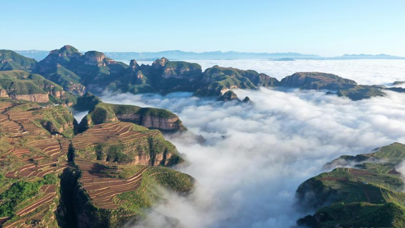 5月5日,雨后的河北省沙河市劉石崗鄉(xiāng)漸凹村云霧飄渺,村莊、山巒、梯田在云海中若隱若現(xiàn),構(gòu)成一幅美麗畫卷。