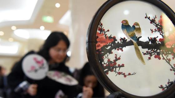 2018年“指尖話語”秀山手工作品匯展主題活動在重慶市巾幗園啟動,共展出苗繡、竹編等1200余件精美手工制品。
