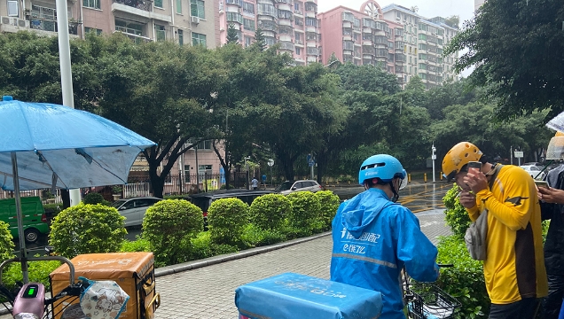 25日上午11時(shí)許,伴隨著雷聲,深圳市福田區(qū)開始下雨。