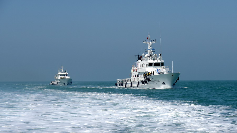 2020年5月6日,山東省榮成市漁政執(zhí)法船在石島灣海域常態(tài)化巡查,場(chǎng)面壯觀如電影大片。