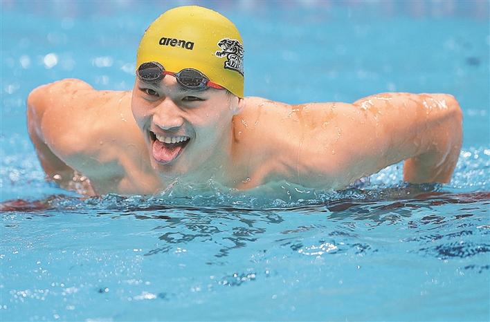 昨日,在第18屆亞運(yùn)會男子200米個(gè)人混合泳決賽中,中國選手汪順后來居上,奪得冠軍。