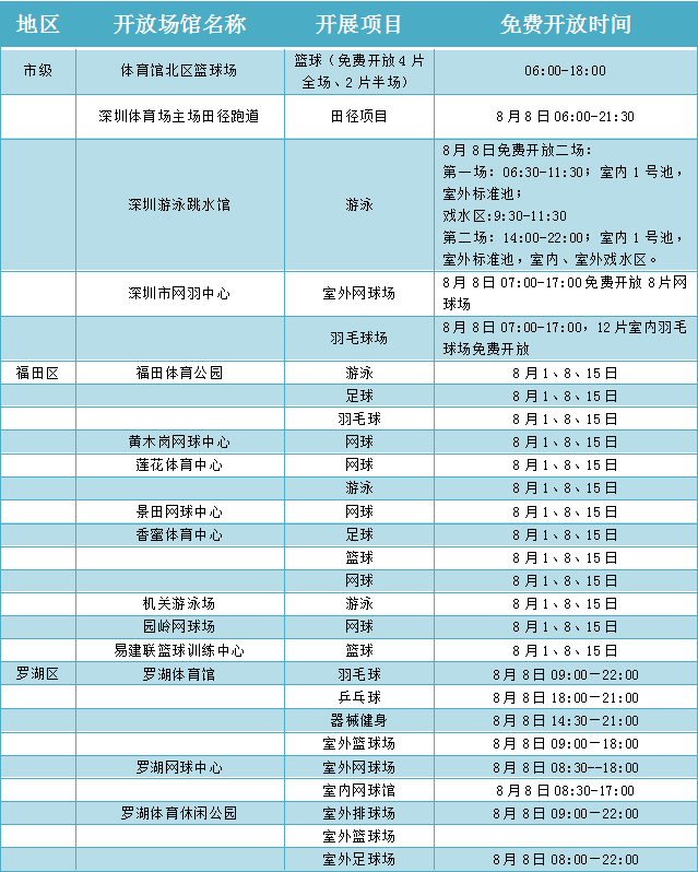 場(chǎng)館免費(fèi)開放表
