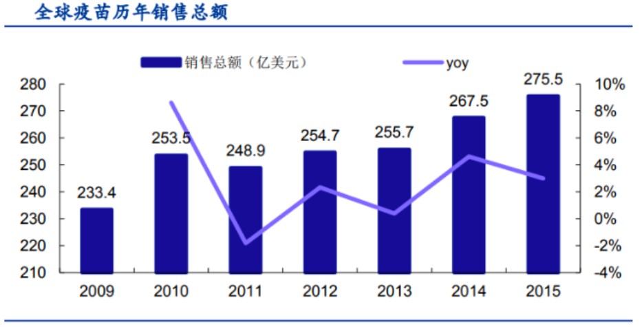 我國有45家疫苗生產(chǎn)企業(yè),可生產(chǎn)63種疫苗,預(yù)防34種傳染病,是世界上為數(shù)不多的能夠依靠自身能力解決全部計劃免疫疫苗的國家之一。從2005年到2015年的十年間,我國疫苗產(chǎn)業(yè)市場規(guī)模從65億元增至245億元,年均復(fù)合增長率達(dá)14%。