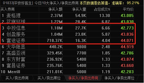 整體而言,中投信息、創(chuàng)盈服務、富途證券三大聯(lián)席券商合計凈買入平安好醫(yī)生約300萬港元,占其全天成交額的17%,內地資金一下已經成為該股的主要參與者。
