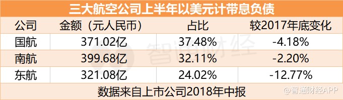 智通財(cái)經(jīng)APP了解到,2015年高峰時(shí),三大航空公司美元負(fù)債水平普遍在80%左右。2018年中期財(cái)報(bào)顯示,截止2018年6月30日,國航以美元計(jì)的帶息負(fù)債占帶息負(fù)債總額比重已經(jīng)降至37.48%,南航、東航的美元帶息負(fù)債占比也分別降至32.11%、24.02%。絕對(duì)金額方面,目前以人民幣計(jì)美元有息負(fù)債規(guī)模,國航為371.02億、南航399.68億、東航321.08億。