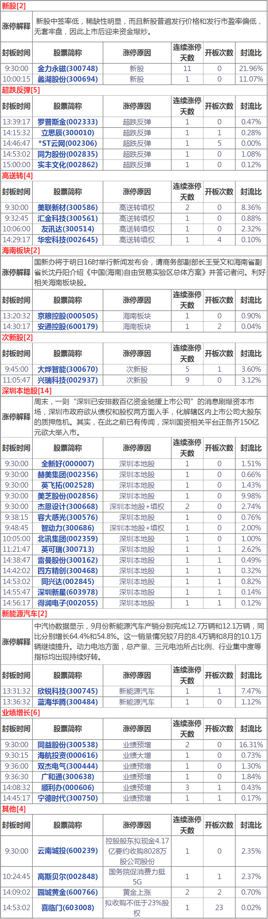 漲停分析:深圳本地股多股漲停高送轉(zhuǎn)板塊持續(xù)強(qiáng)勢(shì)(10月15日)