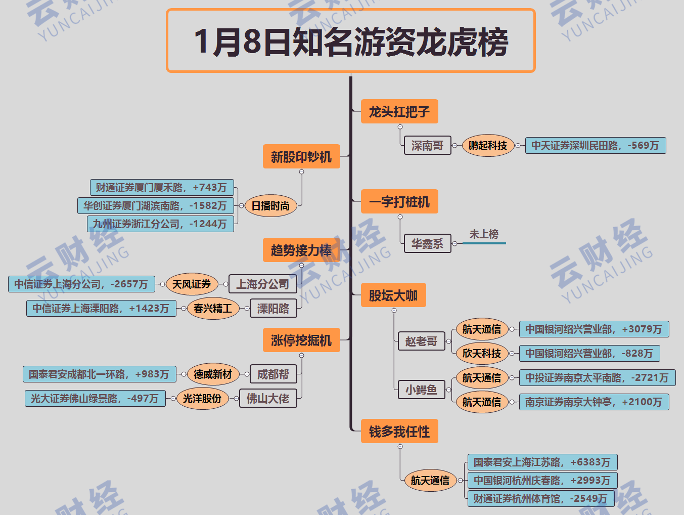 其他游資方面,中信上海分公司割肉賣出天風(fēng)證券(601162)2657萬(wàn),成都幫買入德威新材(300325)983萬(wàn),佛山幫賣出光洋股份(002708)497萬(wàn),深南哥賣出鵬起科技(600614)569萬(wàn)。
