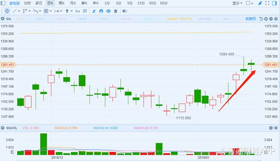 受此影響,港股家電股紛紛看漲,截止發(fā)稿,港股家電板塊已經(jīng)連漲數(shù)日,達(dá)到1262.5,三日漲幅超過(guò)7個(gè)點(diǎn)。
