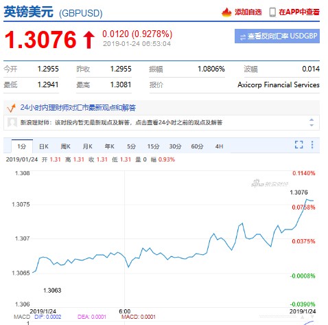 1月24日,據(jù)媒體報(bào)道,英國議會(huì)目前更接近于避免無協(xié)議脫歐的立場(chǎng),工黨越來越支持延遲脫歐的提議;德法兩國高官的表態(tài)顯示,他們對(duì)推遲持開放態(tài)度;受此影響英鎊連續(xù)第三天上漲。
