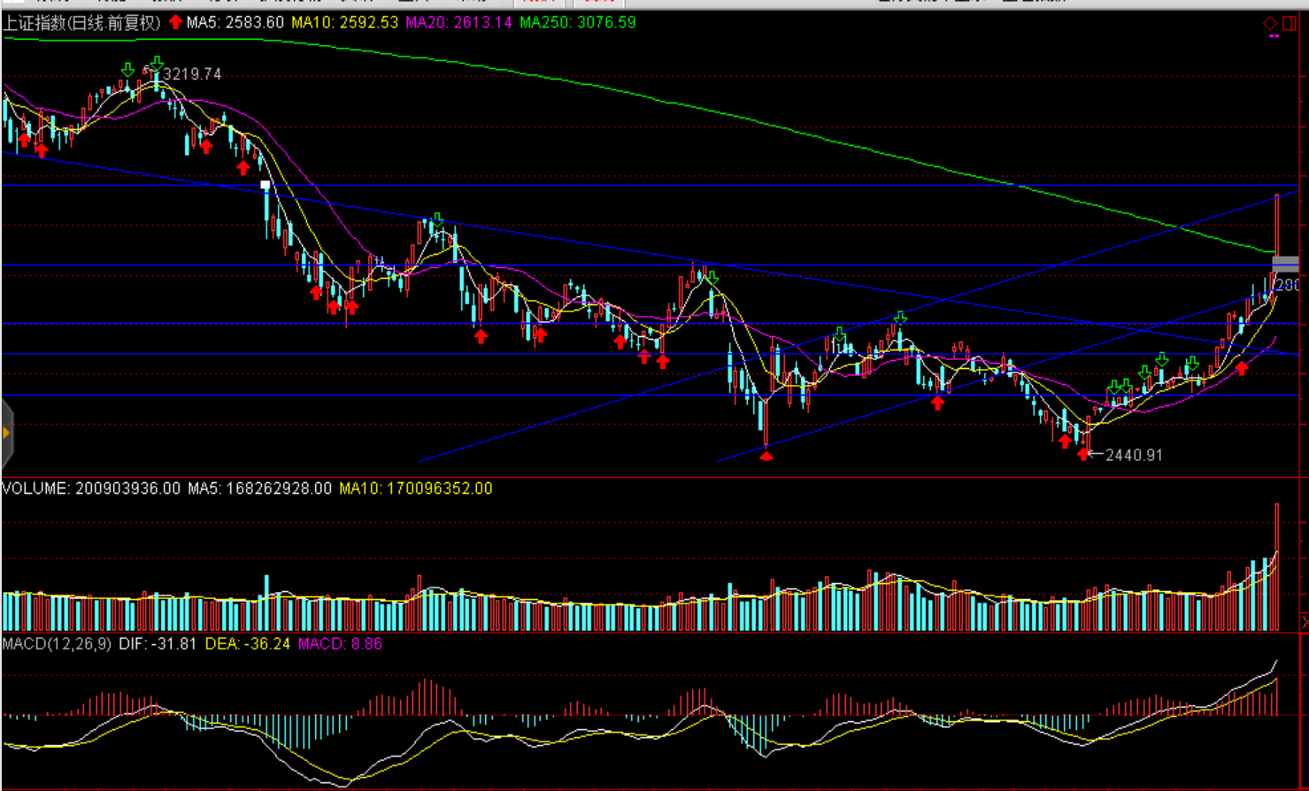 周一兩市大幅放量、強勢上揚,三大股指均以大陽報收。上證綜指收漲5.6%報2961.28點,創(chuàng)2015年7月以來最大日漲幅、深證成指漲5.59%報9134.58點、創(chuàng)業(yè)板指漲5.5%報1536.37點、上證50漲6.28%。兩市巨量成交1.04萬億元,環(huán)比大幅增加4182億元,刷新2015年11月以來新高;北上資金結束連續(xù)18日凈流入,凈流出7億元;盤面看券商、保險、銀行、5G通信、國產(chǎn)軟件、金融科技板及創(chuàng)投塊漲幅居前。整體看市場受到中美貿(mào)易磋商達成共識、金融供給側(cè)改革內(nèi)外利好因素影響,場外資金加速進場,市場進入階段性亢奮。