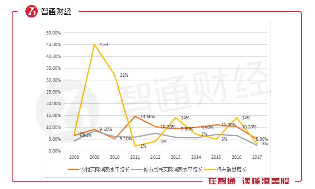 智通財(cái)經(jīng)APP了解到,2008年載客汽車保有量是3850.26萬輛,2009年為4840.81萬輛,同比增長32%,而透過統(tǒng)計(jì)局官網(wǎng)得知,2008年城市每百戶家庭汽車擁有量為8.8輛,2009年為10.9輛,增長了24%,2009年城市人口為64512人,增長3.4%。城市的數(shù)據(jù)均低于行業(yè)的數(shù)據(jù),說明農(nóng)村市場確實(shí)起到了作用。
