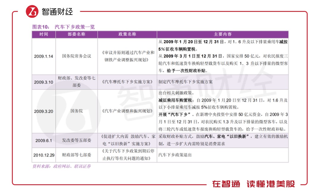 智通財(cái)經(jīng)APP了解到,此次汽車下鄉(xiāng)并非首次,我國曾于2009年開展的汽車下鄉(xiāng),當(dāng)時(shí)新增中央投資安排50億資金,對農(nóng)民購買的指定車型進(jìn)行補(bǔ)貼,但該項(xiàng)政策于2010年退出舞臺。2015年因汽車銷量萎靡,政策再次出馬,當(dāng)時(shí)主要以減征車輛購置稅為主,但并非汽車下鄉(xiāng)措施。
