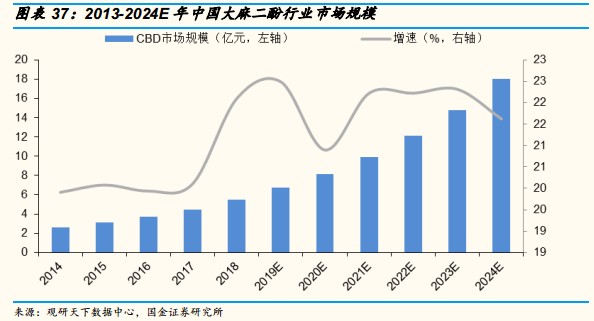 根據(jù)觀研天下數(shù)據(jù)中心的研究:中國(guó)大麻二酚行業(yè)市場(chǎng)規(guī)模也將會(huì)快速增長(zhǎng)。