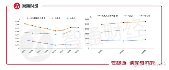 分產(chǎn)品看其毛利率,2016年鋁產(chǎn)品(包括鋁合金和鋁合金加工品)毛利率為23.1%,2017年則將為16%,蒸汽的毛利率從28.4%降至11.4%。2018年相比2017年則基本穩(wěn)定。