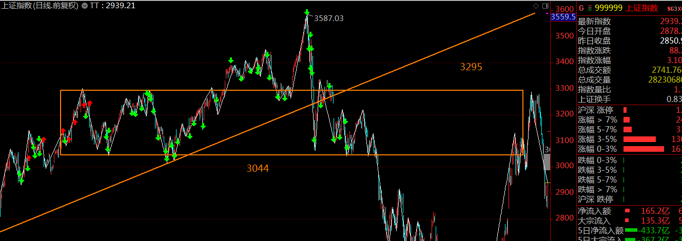 上周滬深兩市風(fēng)險(xiǎn)快速出清,隨著貿(mào)易戰(zhàn)消息階段性落地,上證指數(shù)也跌回了前幾期《一周市場(chǎng)觀察》中所闡明的點(diǎn)位(2800點(diǎn))。本周市場(chǎng)將迎來(lái)趨勢(shì)反轉(zhuǎn),進(jìn)入一段月度級(jí)別的可操作區(qū)間(橫盤震蕩至上漲)。