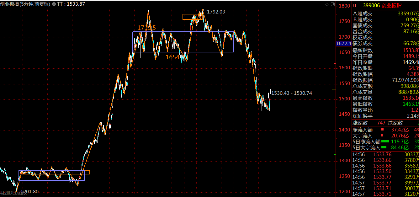 創(chuàng)業(yè)板這里走勢(shì)結(jié)構(gòu)粗暴直接的多,目前已遠(yuǎn)離上方的三十分鐘中樞,壓力位在上方中樞下沿1616點(diǎn)附近,空間較大。相對(duì)來(lái)說(shuō),短期小票走勢(shì)可能會(huì)強(qiáng)一些。