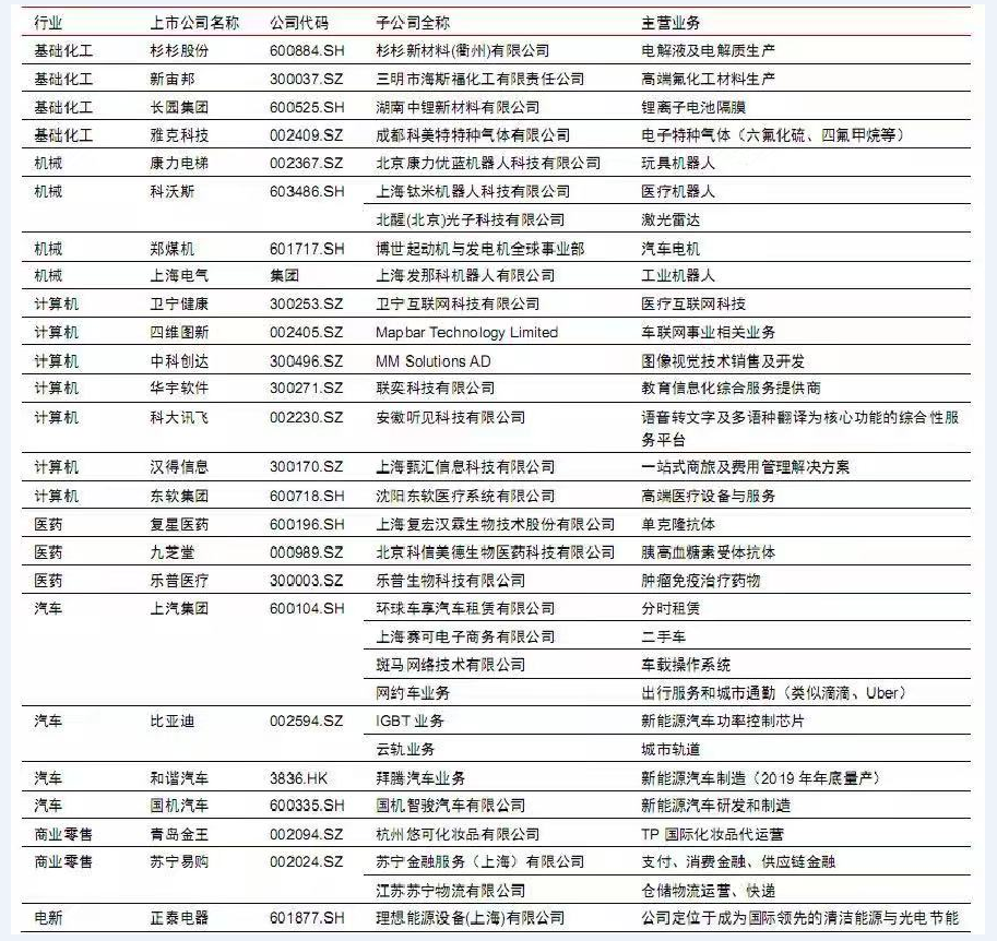 A股潛在分拆上市公司一覽: