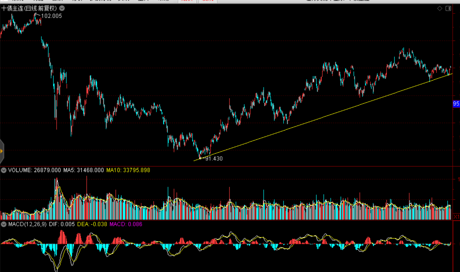 10年期國債期貨延續(xù)反彈態(tài)勢:(與A股存在較為明顯的蹺蹺板效應(yīng))
