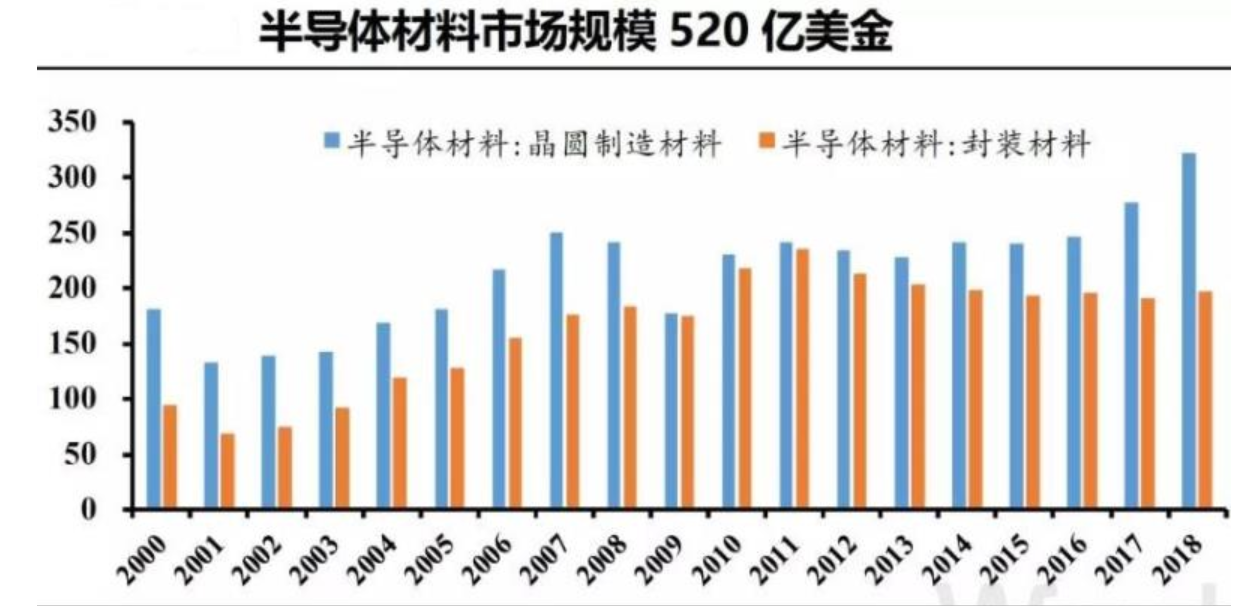 中國大陸和中國臺灣為全球半導體材料主要市場,未來需求將持續(xù)增加。至2018年,中國臺灣和中國大陸半導體材料市場分別為790億元和582億元,在全球占比分別為22.0%和16.3%,合計共38.3%。未來隨著晶圓廠投產量持續(xù)增加,市場規(guī)模將進一步擴大。