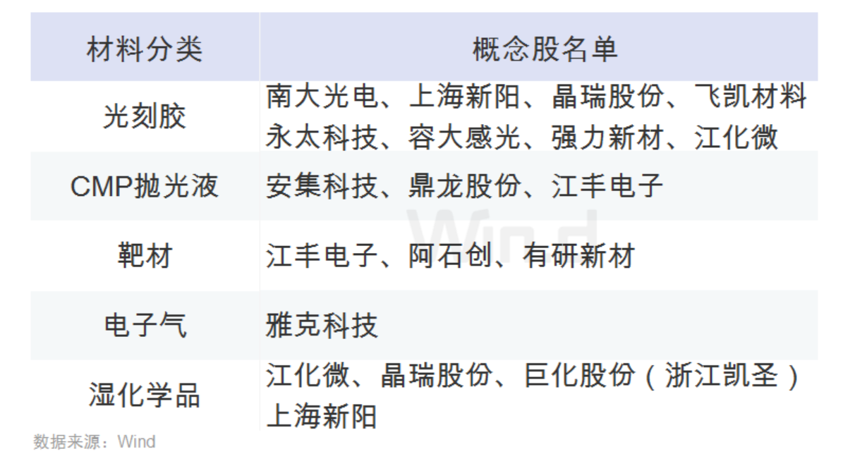 半導體材料相關A股: