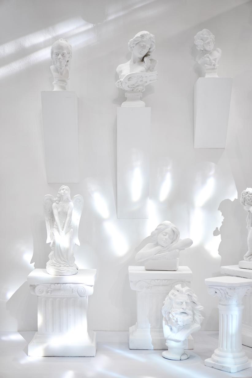 愛之全體驗靜態(tài)藝術(shù)展分為四個區(qū)域,分別對應(yīng) C-L-A-F(克拉時刻的英文),C對應(yīng)白色區(qū)域,代表 C lassic(經(jīng)典 ),在“C lassic”的區(qū)域中,洛杉磯郡藝術(shù)博物館標(biāo)志地標(biāo)-燈柱( Urban Light)與文藝復(fù)興的石膏像相結(jié)合,打造一片純凈又不失時尚的打卡區(qū)域。L對應(yīng)紅色區(qū)域,代表Love(愛),設(shè)計了以“心電感應(yīng)”的一堵墻面,描繪遇到“愛情”的場景,從“正?!钡男碾妶D到遇見“愛”的怦怦心跳,純紅色的背景是打卡拍照的最佳地點。 A對應(yīng)藍(lán)色區(qū)域,代表Aftertaste(回味),整體背景運用國際克萊因藍(lán),形成撞色的沖擊感。利用香水瓶,打造了一個藍(lán)色的“氣味收藏室”。F對應(yīng)黑色區(qū)域,代表Forever(永恒),運用霓虹燈管打造神秘時尚的氛圍,就像鉆石一樣在黑暗中閃爍,黑色背景成為許多人打卡點,仿佛電影橋段般的文字設(shè)計,非常適合還原電影場景。