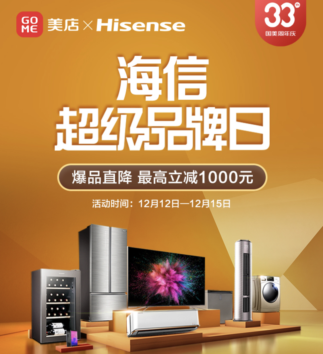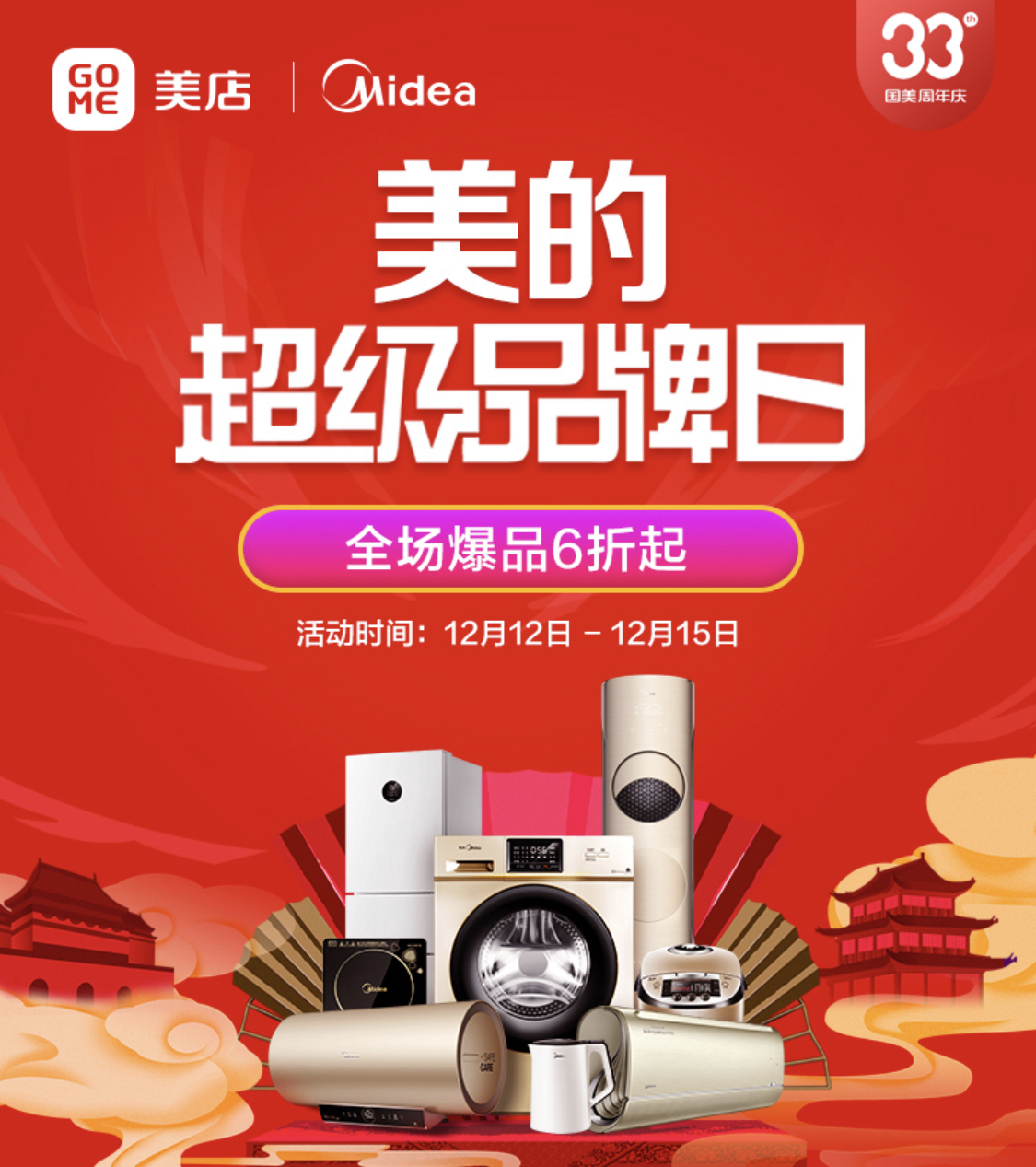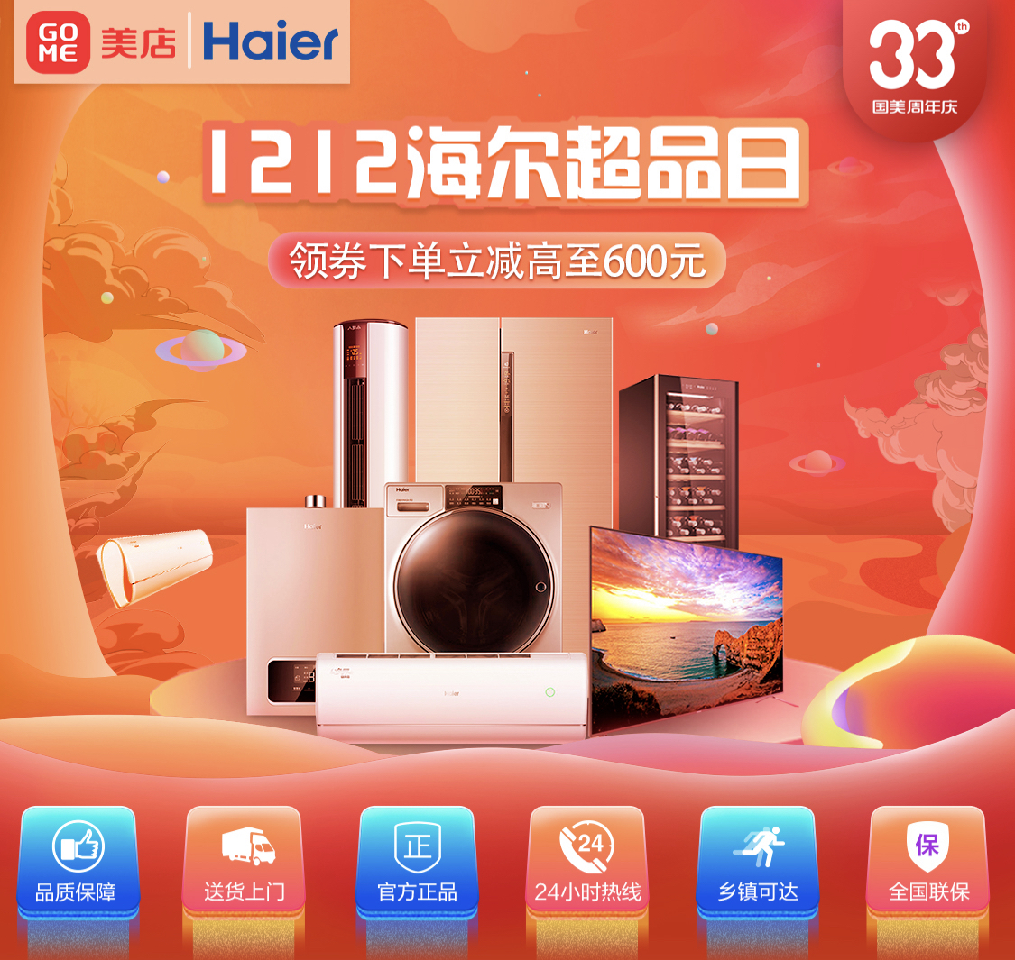 12月12日-15日,33周年生日之際,國(guó)美與海爾再度攜手,國(guó)美美店帶來(lái)海爾超級(jí)品牌日活動(dòng),涵蓋了海爾冰箱、洗衣機(jī)、空調(diào)、電視、廚房衛(wèi)浴等多個(gè)品類豐富產(chǎn)品,多重優(yōu)惠福利、六大承諾保障、延保清洗服務(wù)。