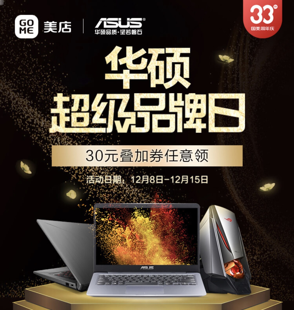 國(guó)美33周年華碩超級(jí)品牌日,游戲、辦公、輕薄顏值筆記本電腦應(yīng)有盡有,全場(chǎng)產(chǎn)品可領(lǐng)30元無(wú)門檻可疊加優(yōu)惠券,相當(dāng)于在原有優(yōu)惠基礎(chǔ)上再降30元。