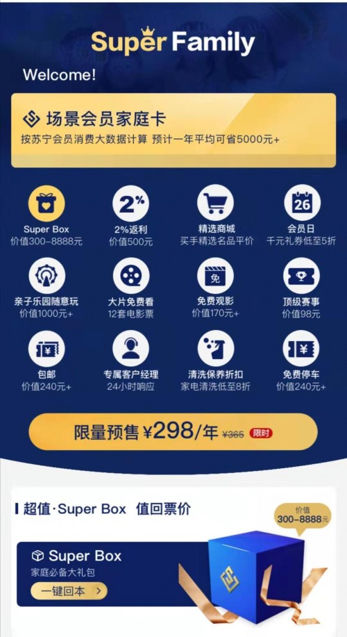 年初,蘇寧易購?fù)瞥?S UPER VIP專屬會員特權(quán),母嬰家庭只需辦理價值149元的 Super VIP會員卡,再加150元,即最高花費299元,就能在蘇寧紅孩子游樂不限時間、不限次數(shù)的玩上一整年。貫穿全年的紅粉會員答謝會,通過海量母嬰正品、專業(yè)的育嬰師服務(wù)和特色會員福利活動圈粉超千萬。而最新升級的蘇寧Super Family會員更是以承包一家人的衣食住行為出發(fā)點,融合了蘇寧體育、蘇寧影城、蘇寧金融、蘇寧紅孩子、蘇寧廣場等業(yè)態(tài),共12項特權(quán),發(fā)力會員場景零售,打造了完善的會員生態(tài)服務(wù)。