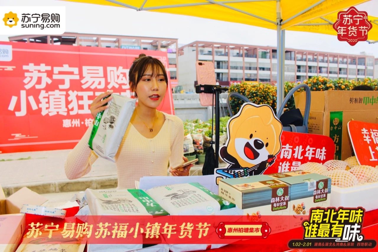 活動現(xiàn)場,近30家攤位一字排開,有來自湘西的臍橙、焦作的鐵棍山藥、武漢的熱干面、深圳的深圳手信產(chǎn)品,琳瑯滿目的各地產(chǎn)品擺放得滿滿當當。此外蘇寧還邀請到專業(yè)主播與惠州當?shù)氐霓r(nóng)產(chǎn)品賣家互動,品嘗各地美食、體驗廣東特色花市,打造特色的土潮風格直播間,讓線上線下都能感受到濃濃年味。家住惠州博羅縣的趙大媽告訴記者,他們經(jīng)常來柏塘市場購買新鮮蔬菜和家禽,這里不僅選擇較多而且在一些品類上還有價格優(yōu)勢。“馬上就要過年了,來這里可以采集到全國各地的美食年貨,讓家人過個肥美的新年。”