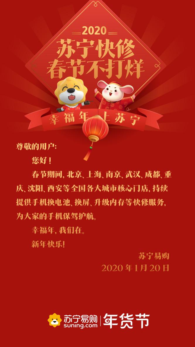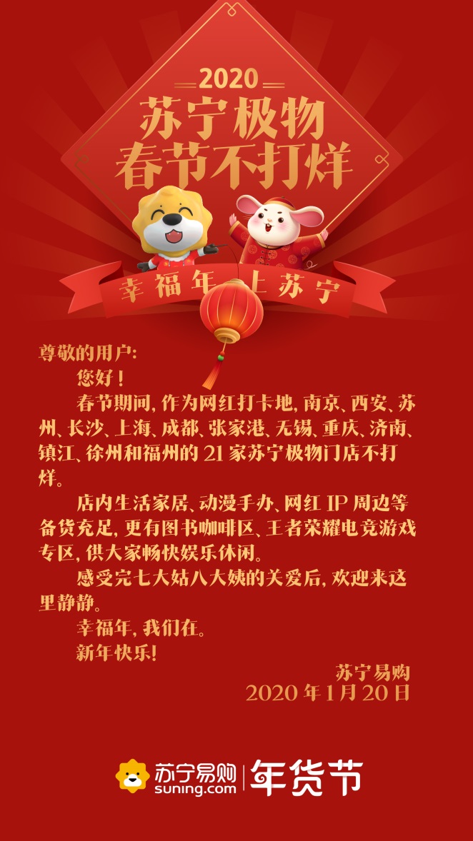 蘇寧密集發(fā)布春節(jié)不打烊通知 網友:極物亮了