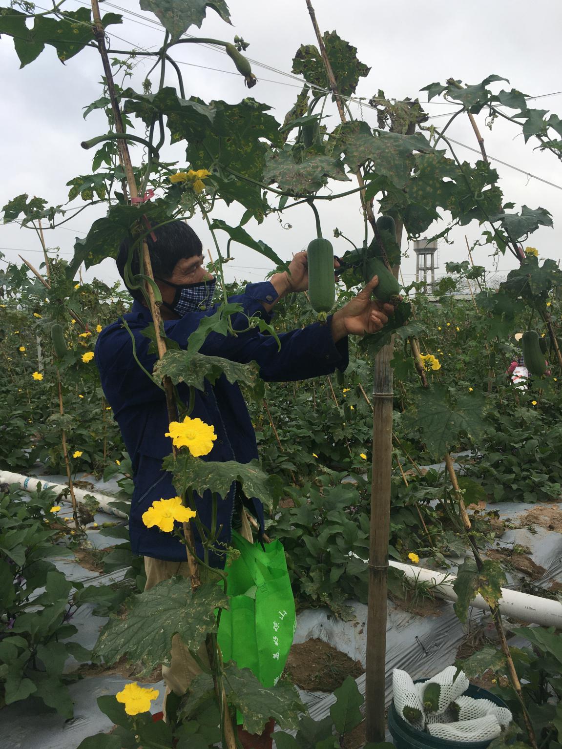 “前幾天,我們?nèi)ズ?诿捞m區(qū)大致坡萬眾農(nóng)合社采購了農(nóng)戶滯銷的絲瓜和圓茄,絲瓜每斤1.5元,圓茄每斤1元。在疫情沒來之前,圓茄采購價大概也要3.5 -4元每斤,絲瓜5 -6元每斤。這次進貨價的降幅高達75%?!奔覙犯HA南區(qū)蔬果采購部長孟毅介紹到。