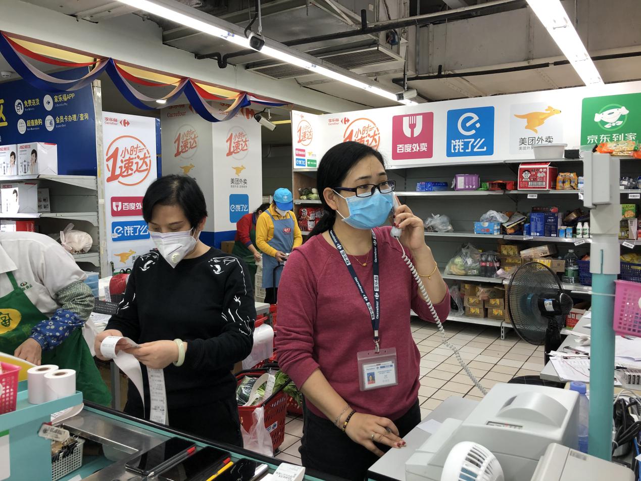 “最近十幾天,我們每天都要工作12個(gè)小時(shí)以上?!闭f這話的正是家樂福深圳梅林店的電商主管王立華,由她帶領(lǐng)的5人小團(tuán)隊(duì)肩負(fù)起該店“配送到家”服務(wù)的揀貨、核單、打包、確認(rèn)、與騎手交貨等工作。疫情當(dāng)前為避開人群,更多的市民選擇在線上外賣平臺(tái)訂購超市的商品配送到家,因此超市的線上訂單猛增。為了實(shí)現(xiàn)“1小時(shí)速達(dá)”的承諾,避免訂單超時(shí),王立華要求團(tuán)隊(duì)從出單到打包好不能超過20分鐘,每天過手的各類商品有上千件?!凹覙犯C妨值甑馁u場(chǎng)面積大概是5000平方米,每天上下樓跑多少趟具體倒是沒有統(tǒng)計(jì)過,但像現(xiàn)在特殊時(shí)期,我們一天在網(wǎng)上接到的‘配送到家’服務(wù)訂單基本都要超過800單,有時(shí)候會(huì)到1000單。”王立華回答記者時(shí),額頭上一直有細(xì)密的汗珠,聲音也有點(diǎn)沙啞了。