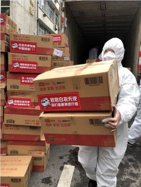 武昌醫(yī)院捐贈物資接收負(fù)責(zé)人在接受央視新聞記者現(xiàn)場采訪時表示,醫(yī)護(hù)人員穿上防護(hù)服會大量流汗,沒有胃口,方便食品可以改善食欲,而且更主要的是快,節(jié)約時間,幫助我們與時間賽跑,感謝國美等愛心企業(yè)的援助,他們默默無聞地提供了充足的物資和優(yōu)質(zhì)的服務(wù),幫助我們與新冠病毒抗擊,打贏這場戰(zhàn)役。