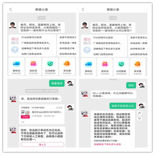 智能客服小美還賦能了人工在線客服會(huì)話輔助功能,可根據(jù)用戶(hù)問(wèn)題,自動(dòng)在工作臺(tái)右側(cè)給出參考答案,供人工客服選擇回復(fù)用戶(hù),客服工作效率提升近70%。在系統(tǒng)賦能的同時(shí),客服中心也合理進(jìn)行了在線客服人員實(shí)時(shí)靈活調(diào)配,應(yīng)對(duì)話務(wù)進(jìn)線波動(dòng),截至2020年3月中旬,在線客服平均接通率達(dá)到95%以上。