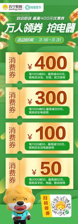 深圳蘇寧針對整個粵東區(qū)域投放近20萬張消費券,該券根據可用產品類型分為400元、300元、100元、50元四種不同面值。消費券以電子券為形式發(fā)放,消費者可通過深圳蘇寧微信公眾號、深圳蘇寧官方微博、蘇寧云店小程序和蘇寧易購門店進行領取,領取成功后,消費券將自動存儲在消費者的蘇寧會員賬戶中,使用時系統(tǒng)會根據購買的商品類別進行自動適配和抵扣結算。