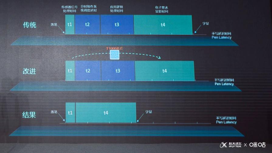 為了實(shí)現(xiàn)這個(gè)突破,智能本與E Ink原廠通力合作、聯(lián)合調(diào)優(yōu),在業(yè)界首次實(shí)現(xiàn)了墨水屏手寫處理芯片化(T1000芯片),直接將寫顯延遲中的軟件處理部分通過(guò)芯片實(shí)現(xiàn),大大的縮短了墨水屏的寫顯延遲。當(dāng)前,在咪咕訊飛智能本青春版中,寫顯延遲僅30毫秒左右。在用戶直接的主觀體驗(yàn)測(cè)試中,已經(jīng)做到了“幾乎無(wú)延遲感”、“像真紙一樣的書寫速度”。