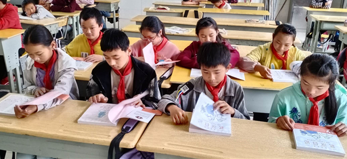 書籍到達當天,黎婧特地發(fā)來錄制好的VCR視頻,為孩子們送上祝福與鼓勵。她說:“希望小朋友們能喜歡這本書,我們要珍惜當下,努力學習,做一個對社會有用的人!”