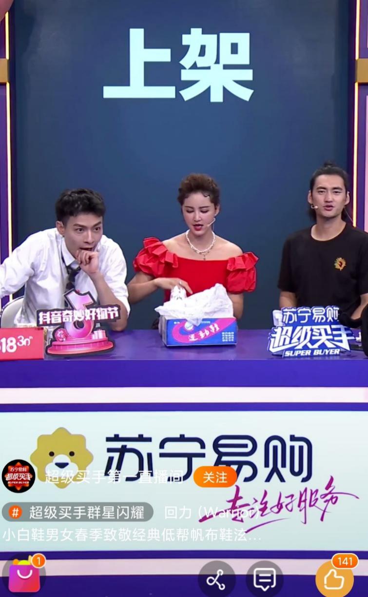 超級(jí)秀舞臺(tái)與“超級(jí)買手”直播間首度實(shí)現(xiàn)連麥,流量“打穿”效果明顯。在蘇寧易購(gòu)與抖音雙平臺(tái)的連播中,直播間全場(chǎng)補(bǔ)貨76次,群星買手人均喜提39次秒空。