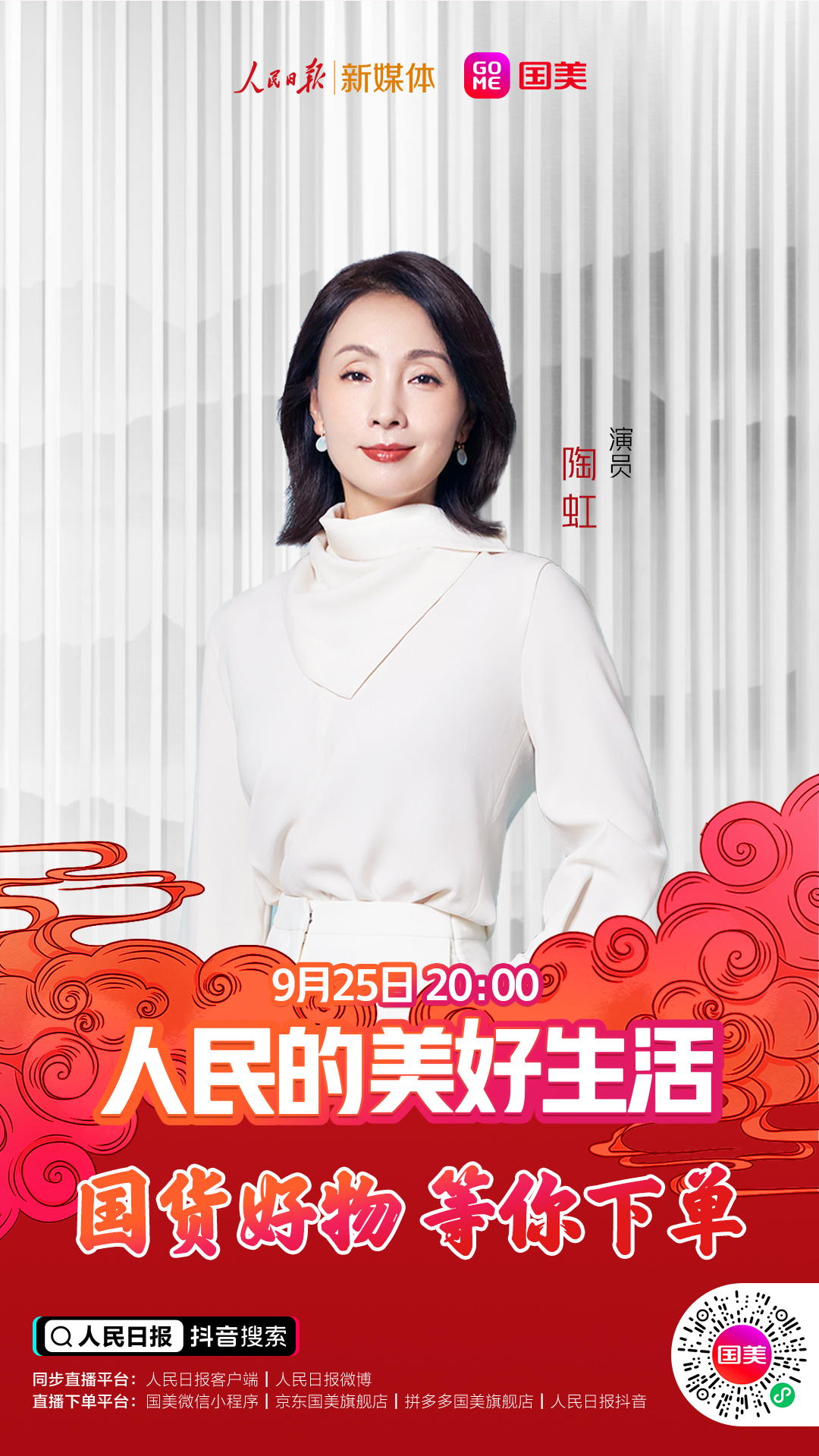 9月25日(周五)晚20點,鎖定人民日報抖音號、國美商城抖音號、國美微信小程序、國美京東旗艦店、國美拼多多旗艦店,關(guān)注直播,國貨好物,等你下單!人民的美好生活,不能少了你!(常軍平)