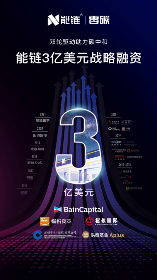中國網(wǎng)2020年3月23日訊 昨日,能鏈宣布完成新一輪2億美元戰(zhàn)略融資,貝恩資本(Bain Capital)領投,老股東愉悅資本繼續(xù)跟投,華興資本擔任獨家財務顧問。綜合今年年初招銀國際領投的1億美元融資,能鏈本次戰(zhàn)略輪系列融資累計金額達3億美元。能鏈股東還包括中金資本、洪泰基金旗下國調洪泰、中小企業(yè)發(fā)展基金、小米集團、蔚來資本、KIP中國等。