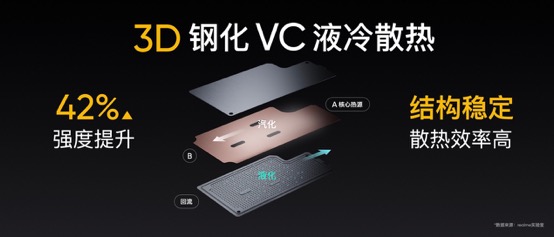 真我GT的性能表現(xiàn),離不開優(yōu)秀散熱技術(shù)的強(qiáng)力支持,創(chuàng)新的3D鋼化液冷散熱不乏好評(píng)。作為GT系列戰(zhàn)略成員,真我GT Neo繼承了GT系列的強(qiáng)悍基因,同樣搭載3D鋼化VC液冷散熱。創(chuàng)新的3D鋼化VC液冷散熱不僅大幅度提高了均熱板的強(qiáng)度,同時(shí)內(nèi)部的結(jié)構(gòu)優(yōu)化也讓整體的散熱效率進(jìn)一步提升。配合100%覆蓋核心發(fā)熱源的多重立體散熱系統(tǒng),高性能的同時(shí)保持冷靜。
